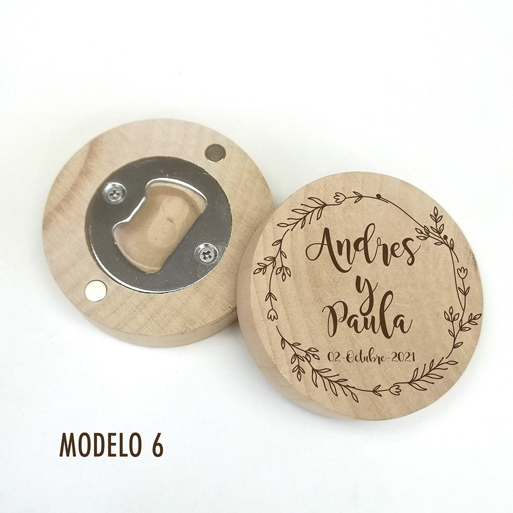 Además de ser bonitos y realizados en madera natural, son de gran utilidad a la hora de tenerlos siempre a mano para abrir ese refresco o cerveza, pues se adhieren muy bien gracias a sus dos imanes que se encuentran en la parte trasera.
