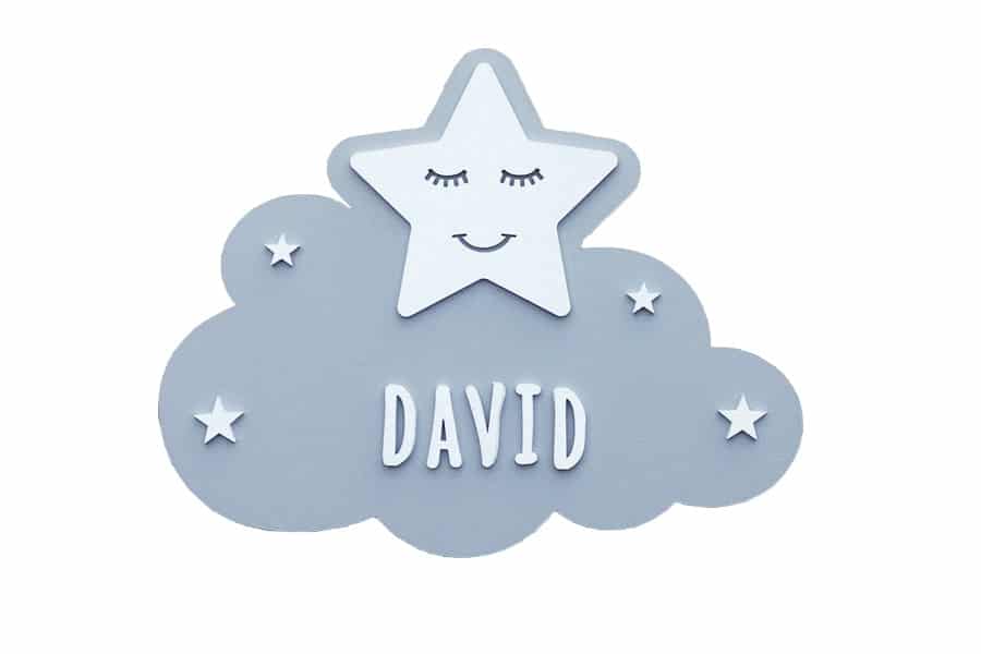 Personaliza tu “Nube – Estrella” con el nombre del bebé o niño y decora su dormitorio, cuna, cama, armario o donde desees.