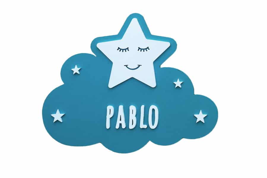 Personaliza tu “Nube – Estrella” con el nombre del bebé o niño y decora su dormitorio, cuna, cama, armario o donde desees.